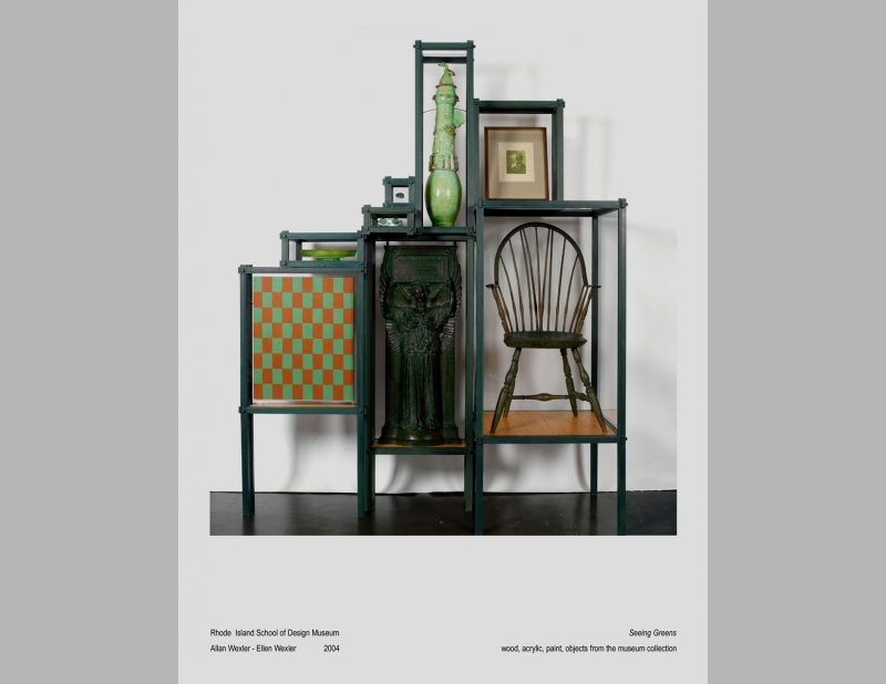 The piece evokes architecture, galleries, packing crates and assemblage sculpture.