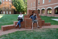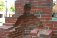 Today students nestle within the wall inside the brick me. The important figure on campus is not an historical equestrian figure. The heroic figure is a portrait an absent artist. The heroic figure is a young student ready to conquer the world.