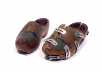Years ago I purchased an adjustable mannequin dress form and a pair of Dutch wooden shoes at a community yard sale. Gradually collecting studio dust, these artifacts visible in my peripheral vision, embed into my psyche until one day they ooze from me forming a new project.